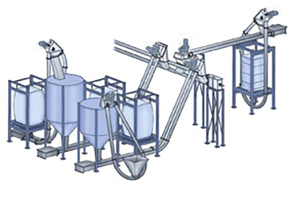 管鏈式輸送機是輸送粉狀、小顆粒狀及小塊狀等散狀物料的連續輸送設備,在密閉管道內,以鏈片為傳動構件帶動物料沿管道運動。當水平輸送時,物料顆粒受到鏈片在運動方向的能力。當料層間的內摩擦力大于物料與管壁的外摩擦力時,物料就隨鏈片向前運動,形成穩定的料流;當垂直輸送時,管內物料顆粒受鏈片向上推力,因為下部給料阻止上部物料下滑,產生了橫向側壓力,所以增強了物料的內摩擦力,當物料間的內摩擦力大于物料與管內壁外摩擦力及物料自重時,物料就隨鏈片向上輸送,形成連續料流。 管鏈輸送系統的優勢: (1)結構緊湊,占用空間小,可以三維改變輸送方向。 (2)出口不必設置除塵器,在輸送物料時呆充裝氣體。 (3)物料沿著管子平滑輸送,物料破損少,緩慢的彎道輸送使很少的物料顆粒產生碎屑。 (4)能耗低——運行成本經濟,整套系統只有一個電機來帶動。 (5)不會產生系統堵塞——適合輸送多種形態的物料。
